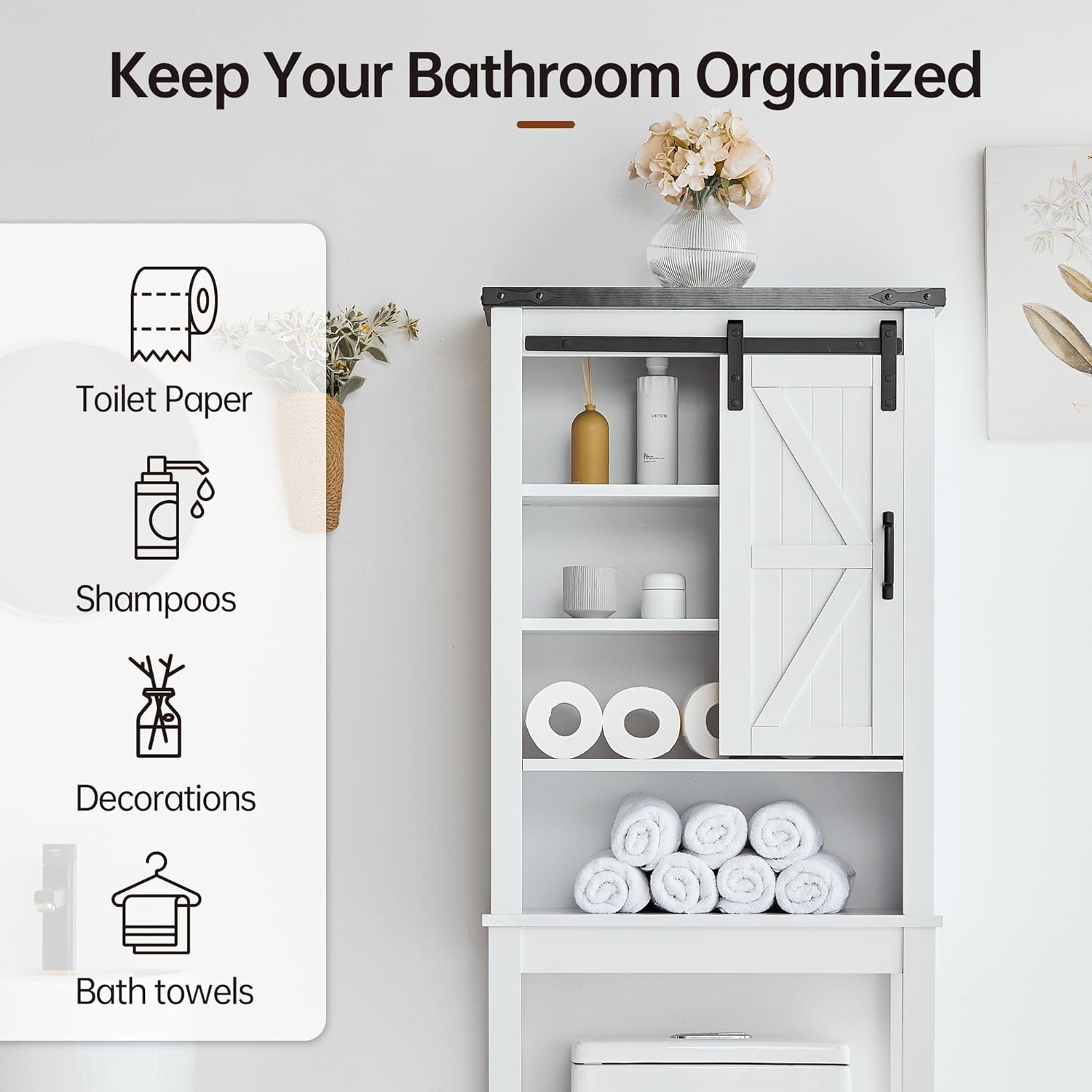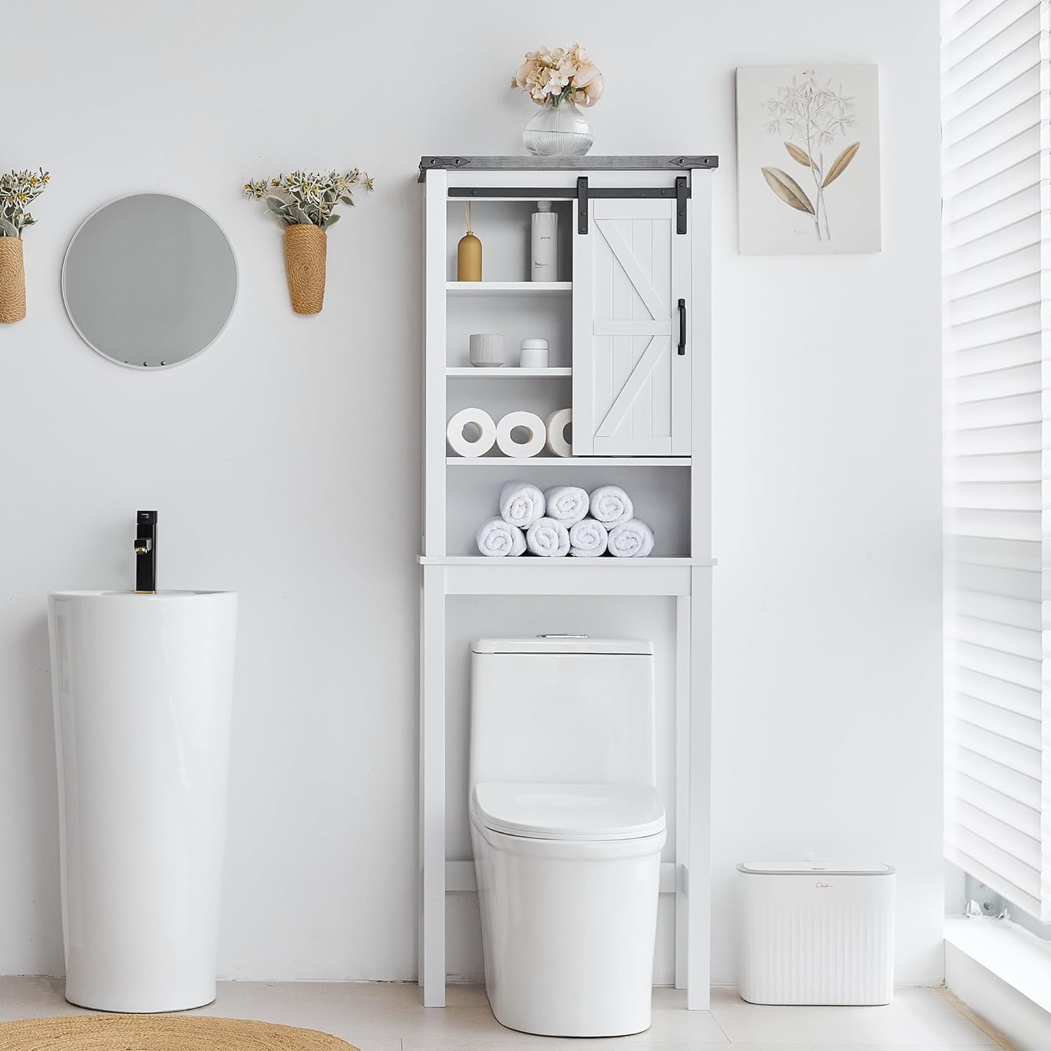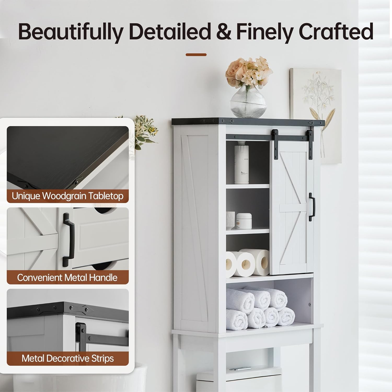 JINSEED Over the Toilet Storage Cabinet, Storage Cabinet Over Toilet with Sliding Barn Door