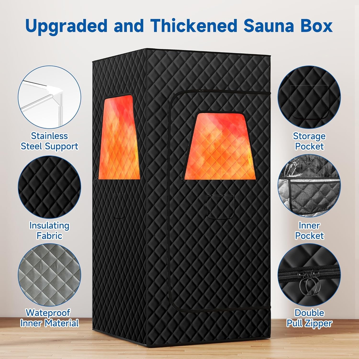 JINSEED Portable Steam Sauna Box with 3L 1500W Steamer, Personal Sauna Tent with 9 Adjustable Heat Levels, Steam Sauna Full Body for Home with Foldable Chair & Remote Control
