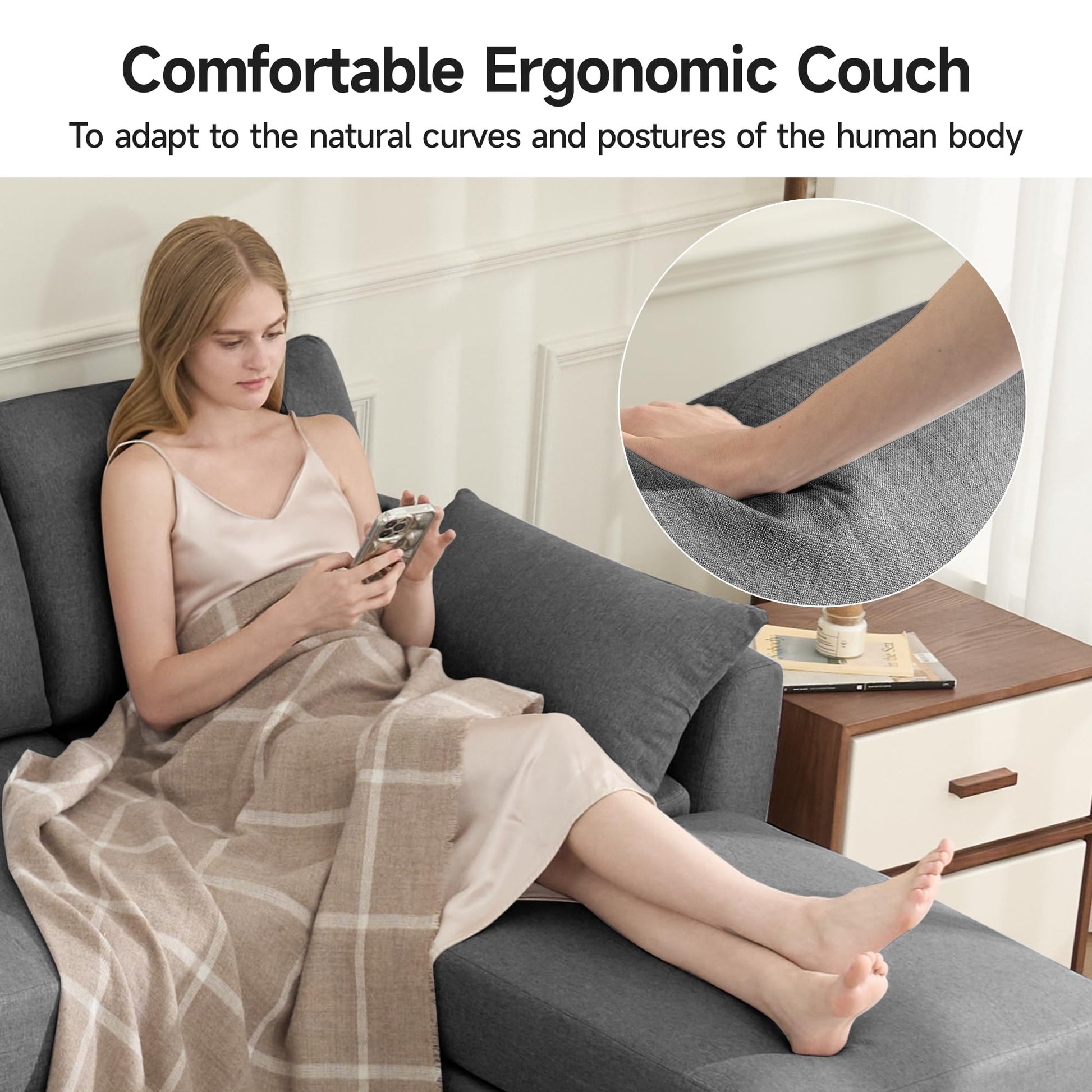Sectional Sofa Convertible 3 Seats L-Shaped Couch, Linen Fabric Modular Sofa with Movable Ottoman for Small Apartments, Dark Gray